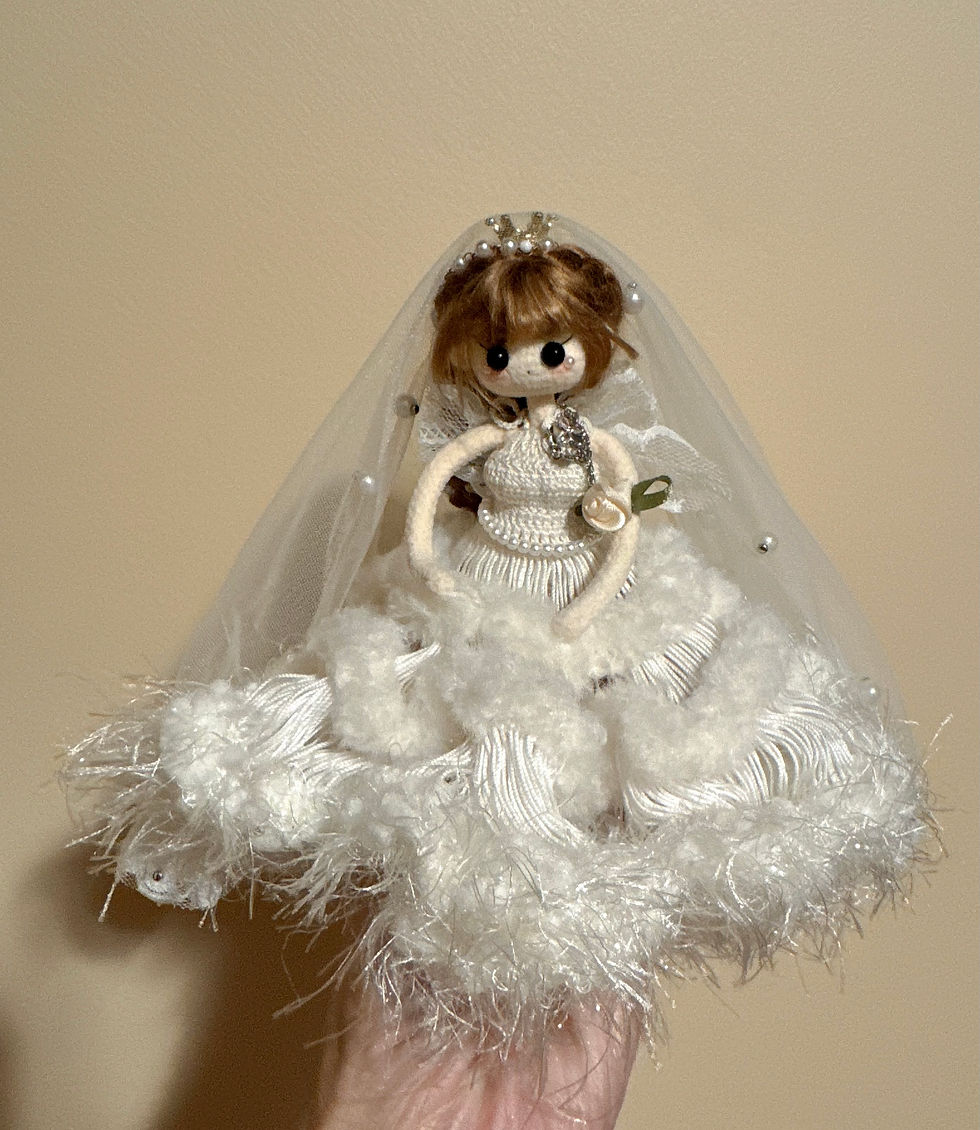 Luxury Micro Crochet Bride Doll –Handmade Mini Wedding Doll –Elegant Collectible